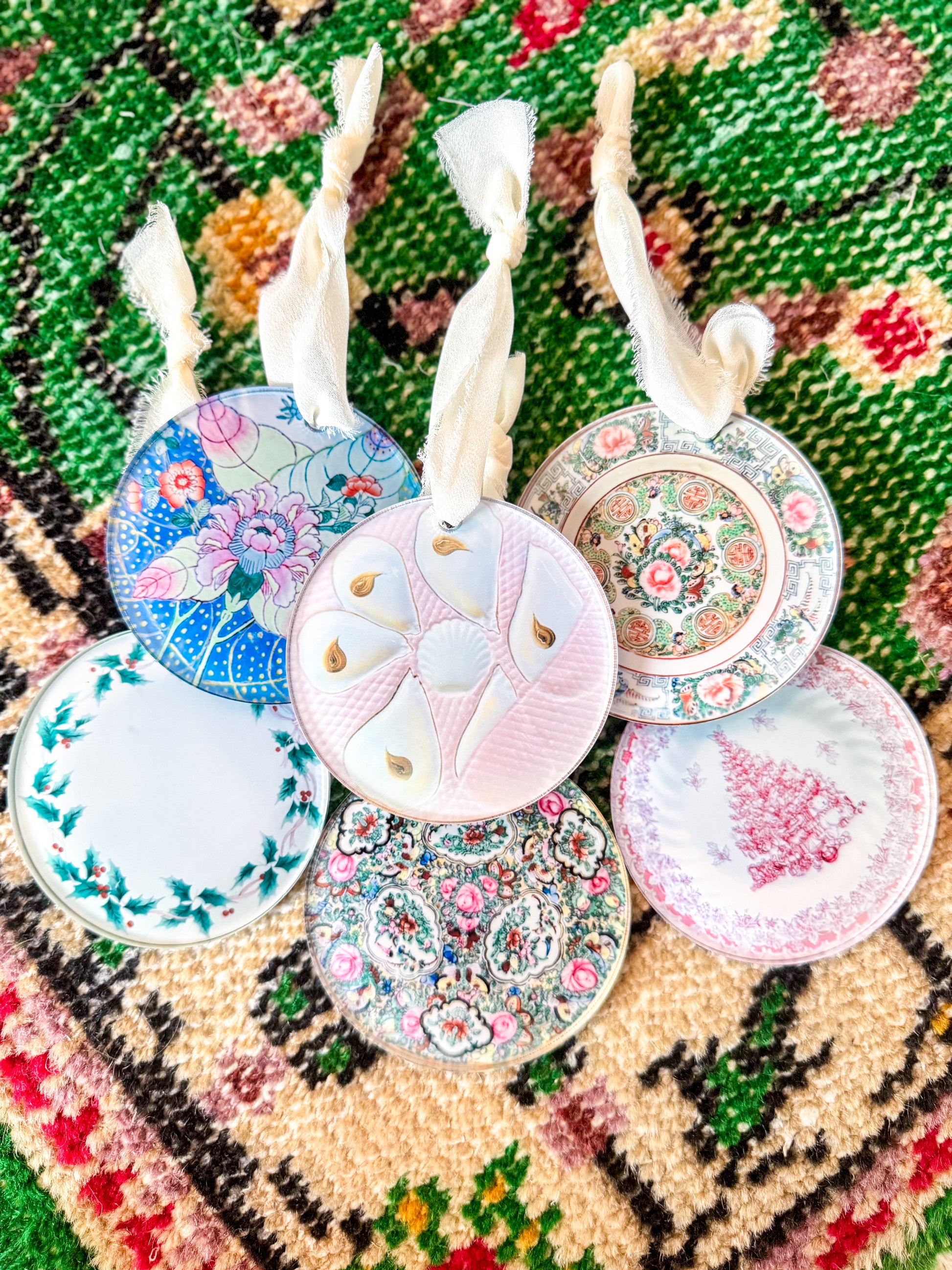 Bring a touch of my home into yours with these Plate Ornaments, each one inspired by the vintage plates I collect and display in my own spaces. Just like the real ones on my walls and shelves, these ornaments carry that same charm and character—only in miniature, ready to hang on your tree.