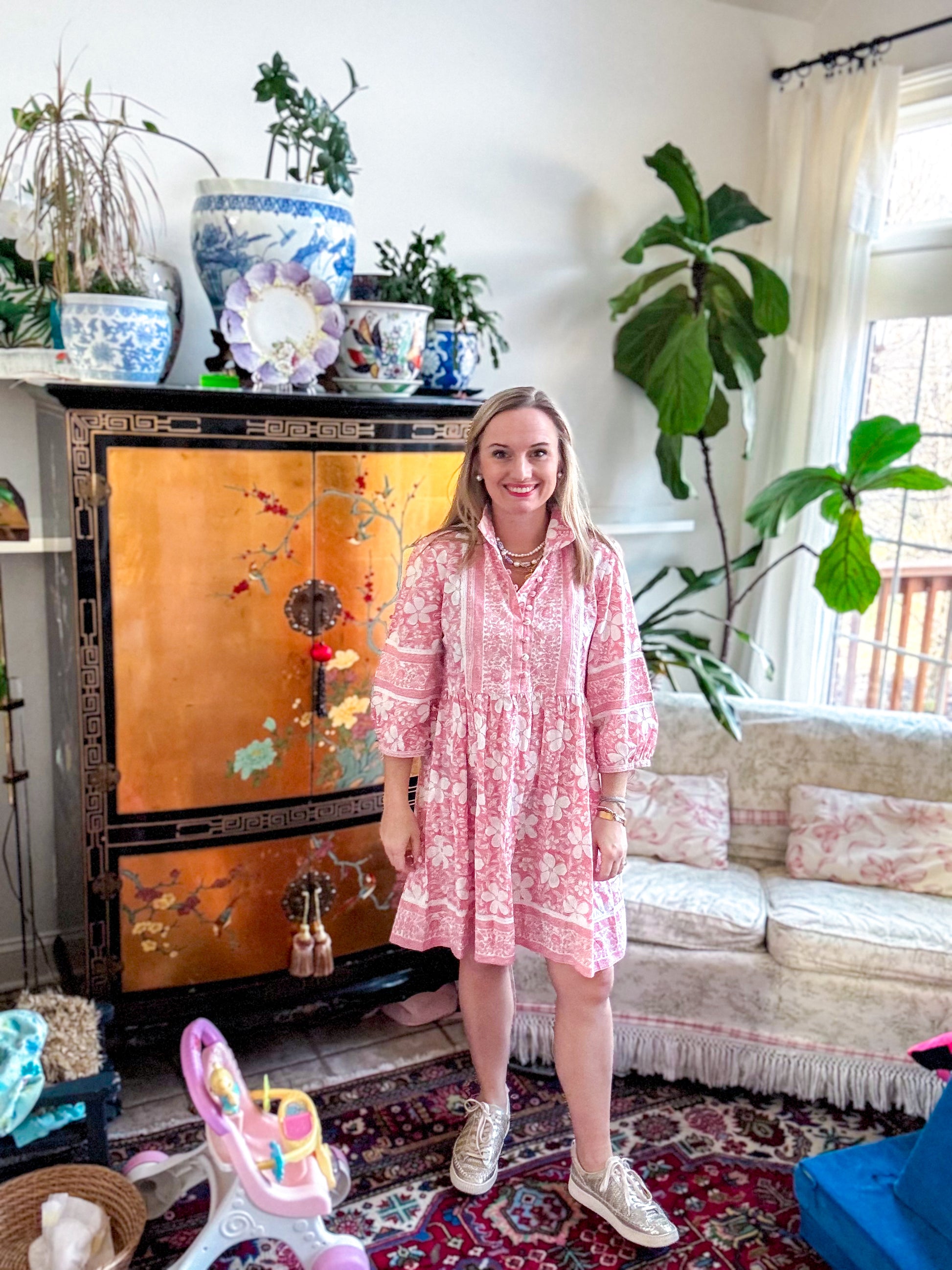 *Preorder* Block Print Dress: Short Pink