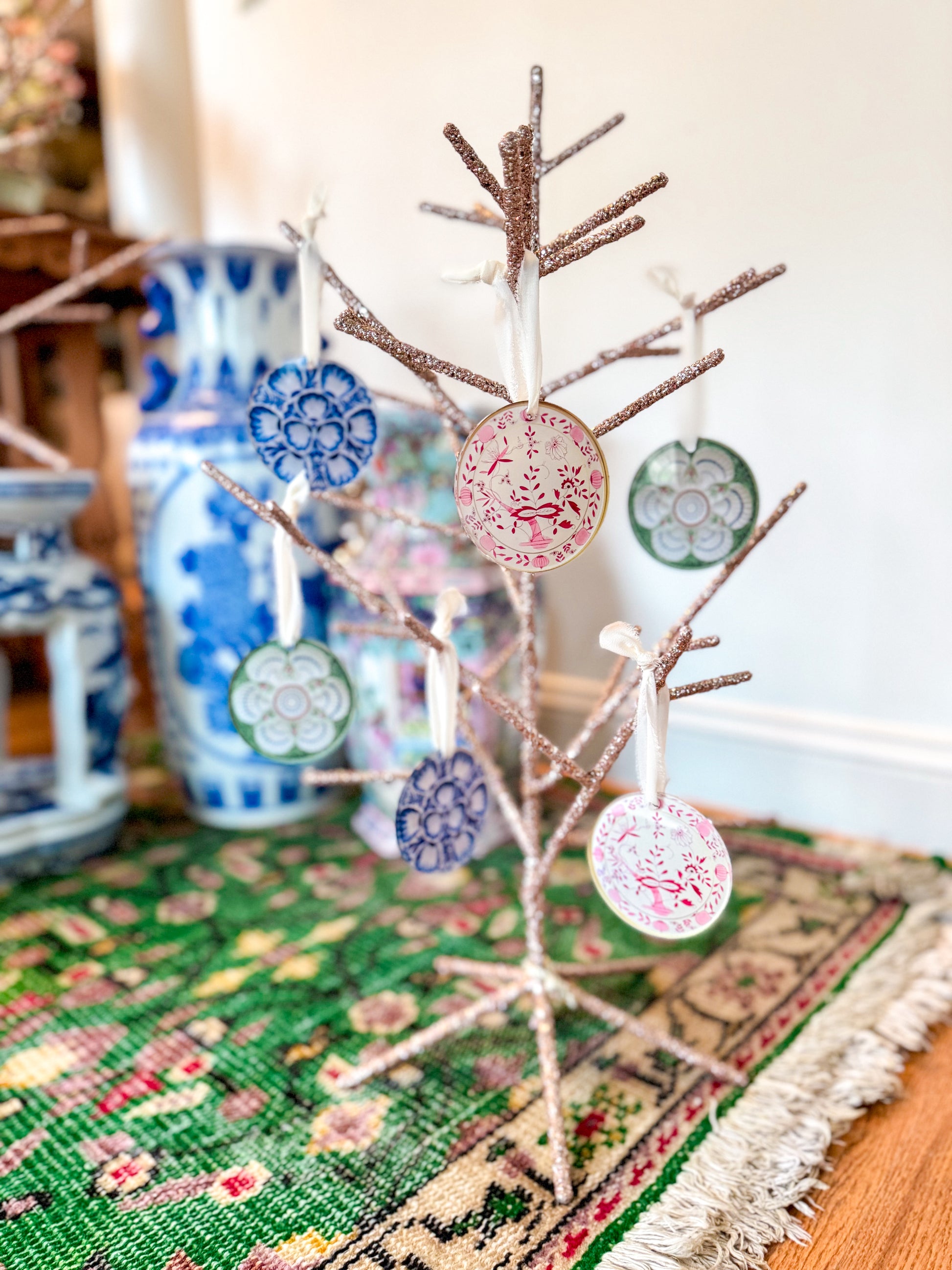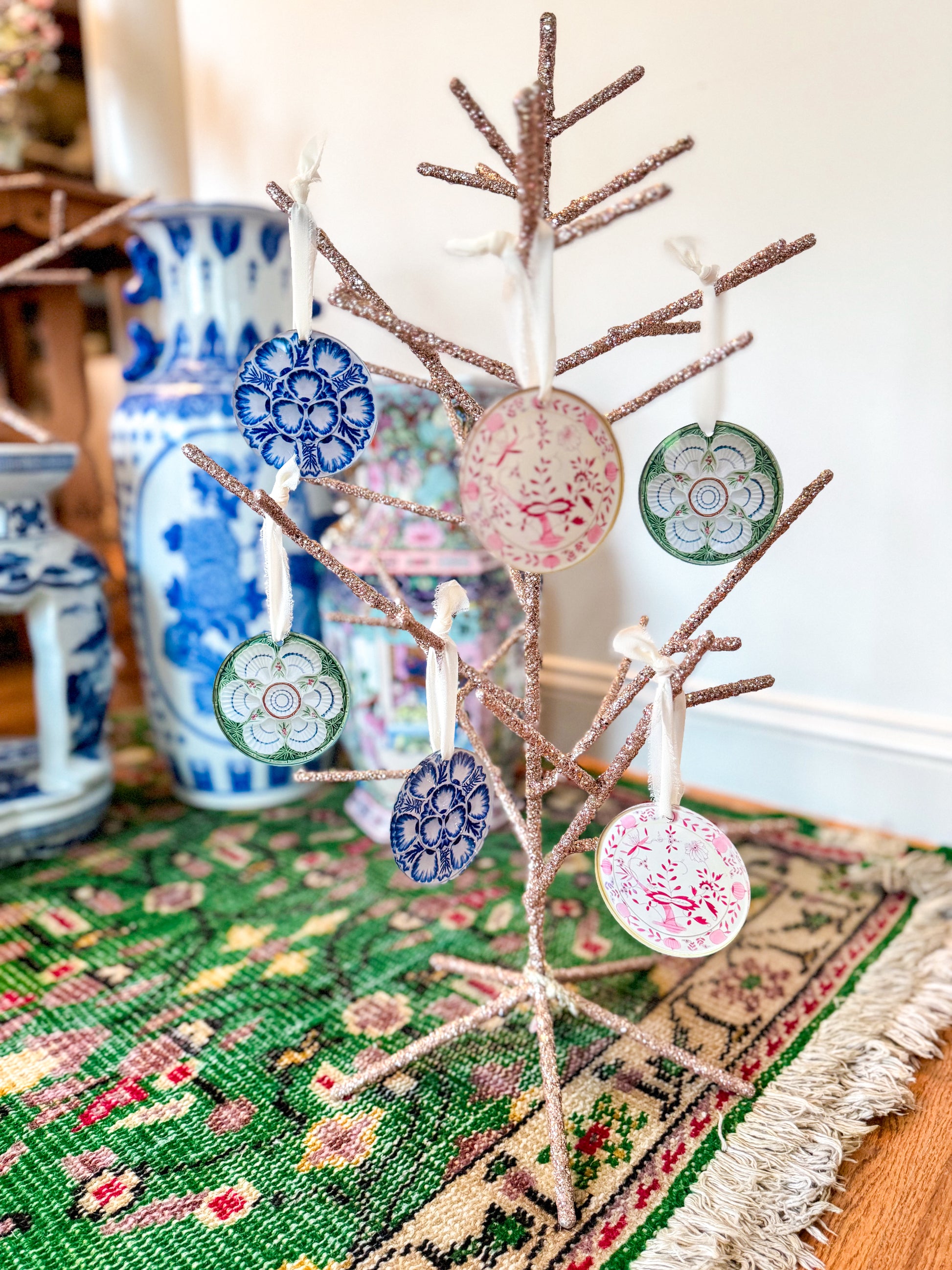 Ornaments are made to order. Each ornament is based on an actual china plate- the shadows and glares will make it look like a real little plate hanging right on your tree! All orders will ship by November 15th.