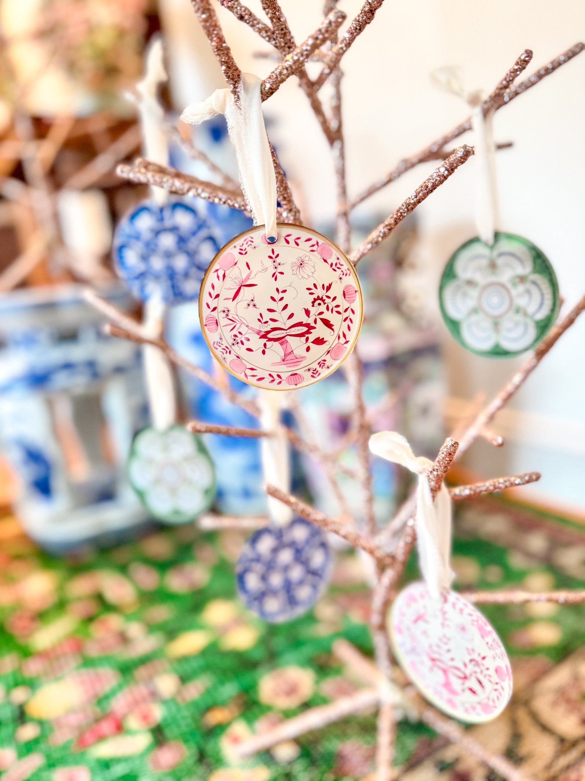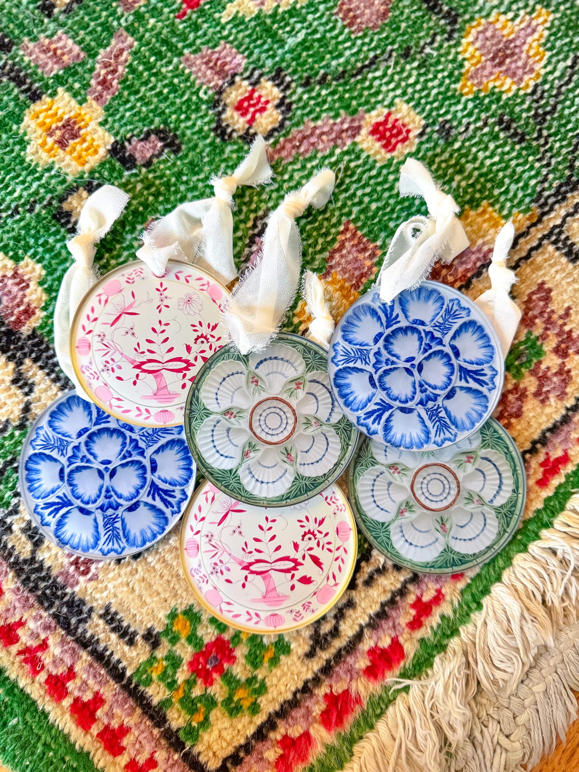 Bring a touch of European charm to your holiday tree with our exclusive ornaments collection, curated by Swan Hill Home. Inspired by European porcelain and classic oyster plate designs, each ornament celebrates their beautiful patterns and designs. From vibrant blue and white to elegant green and romantic pink, these ornaments capture the sophistication of European design while adding a unique flourish to your seasonal décor.