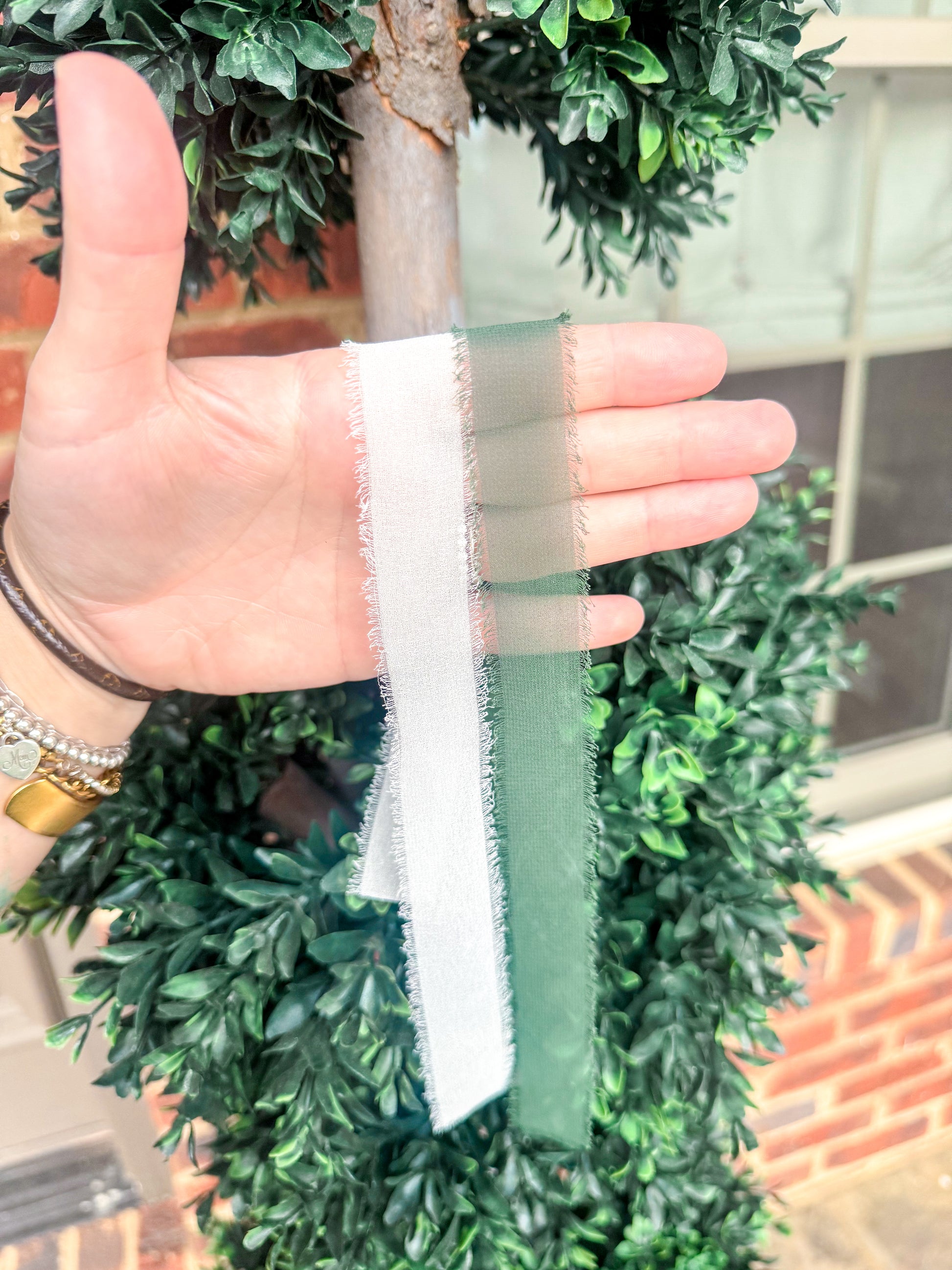 Ribbon: Your choice of white or green chiffon ribbon