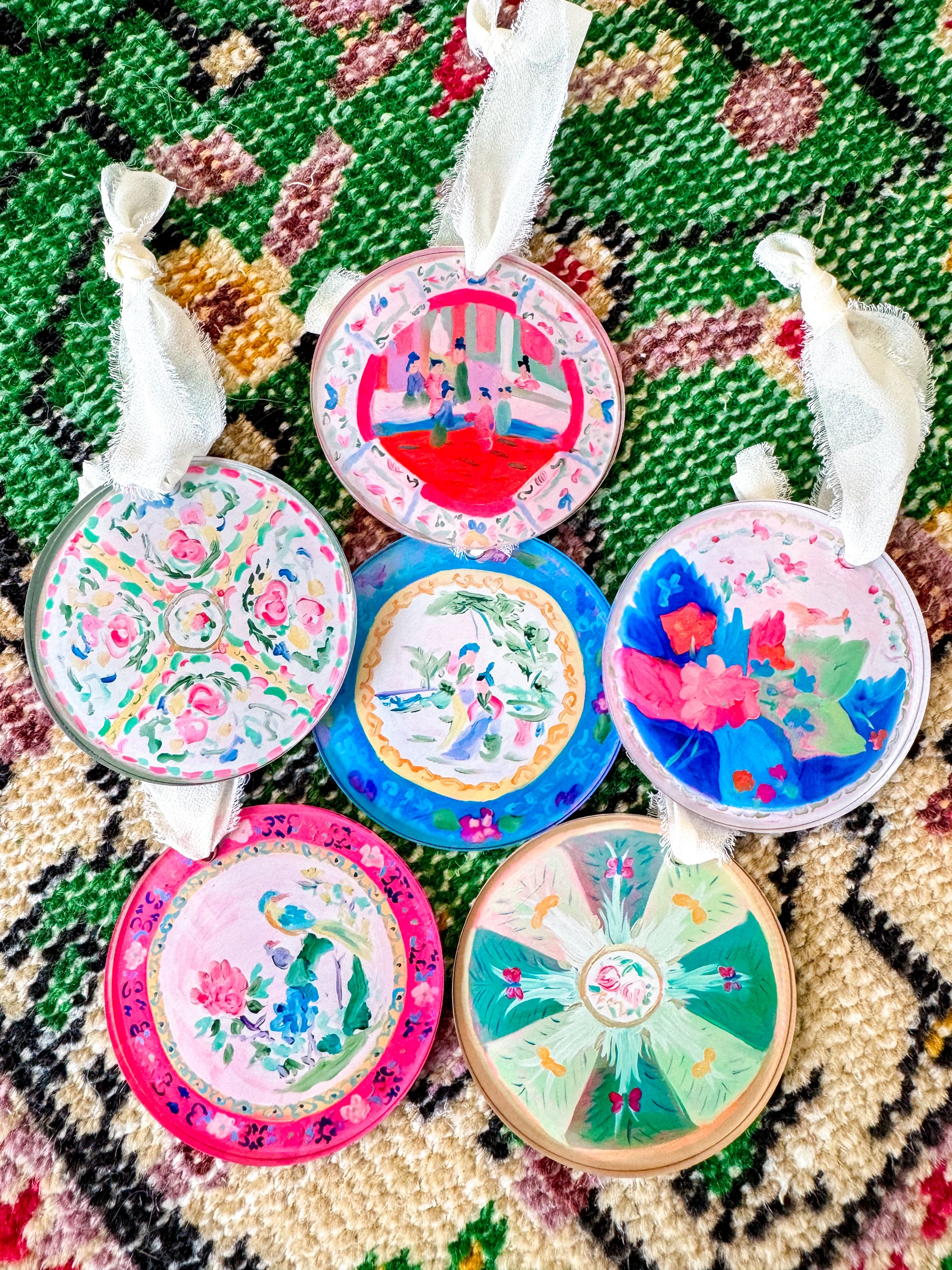 Bring timeless elegance to your holiday decor with these exclusive Christmas ornaments, featuring Dorothy Art’s beautifully hand-painted chinoiserie plate designs. Each ornament captures the intricate details and her modern take with vibrant colors of traditional chinoiserie, adding a touch of vintage sophistication with a twist to your tree.