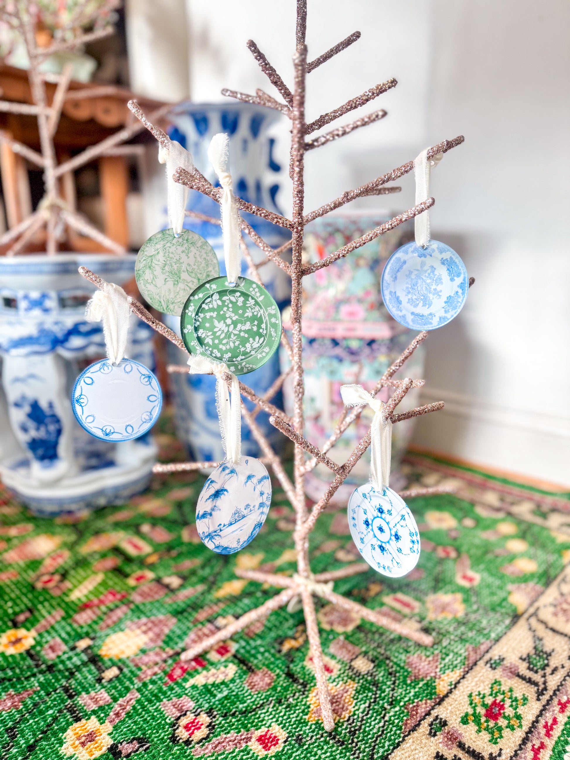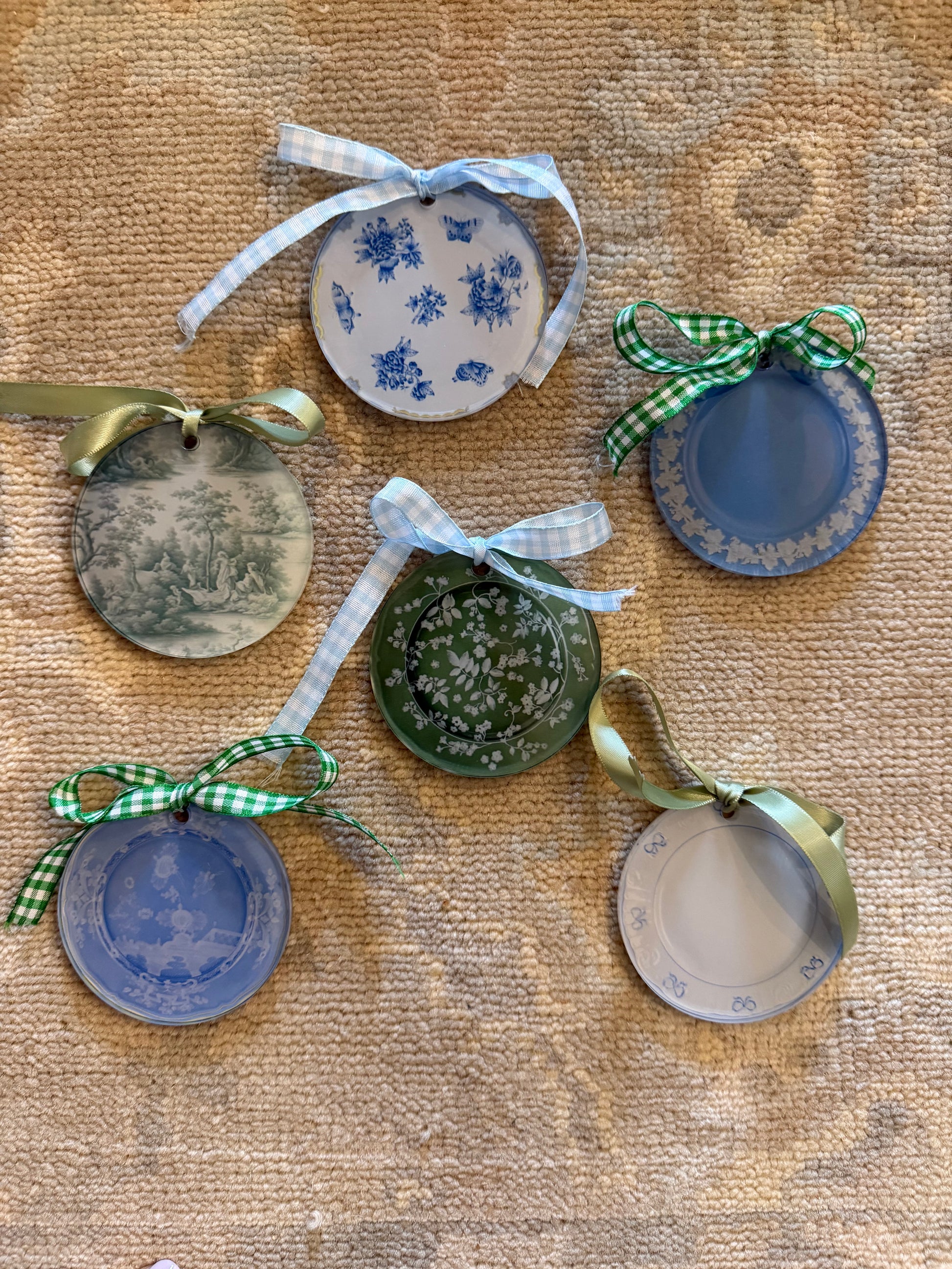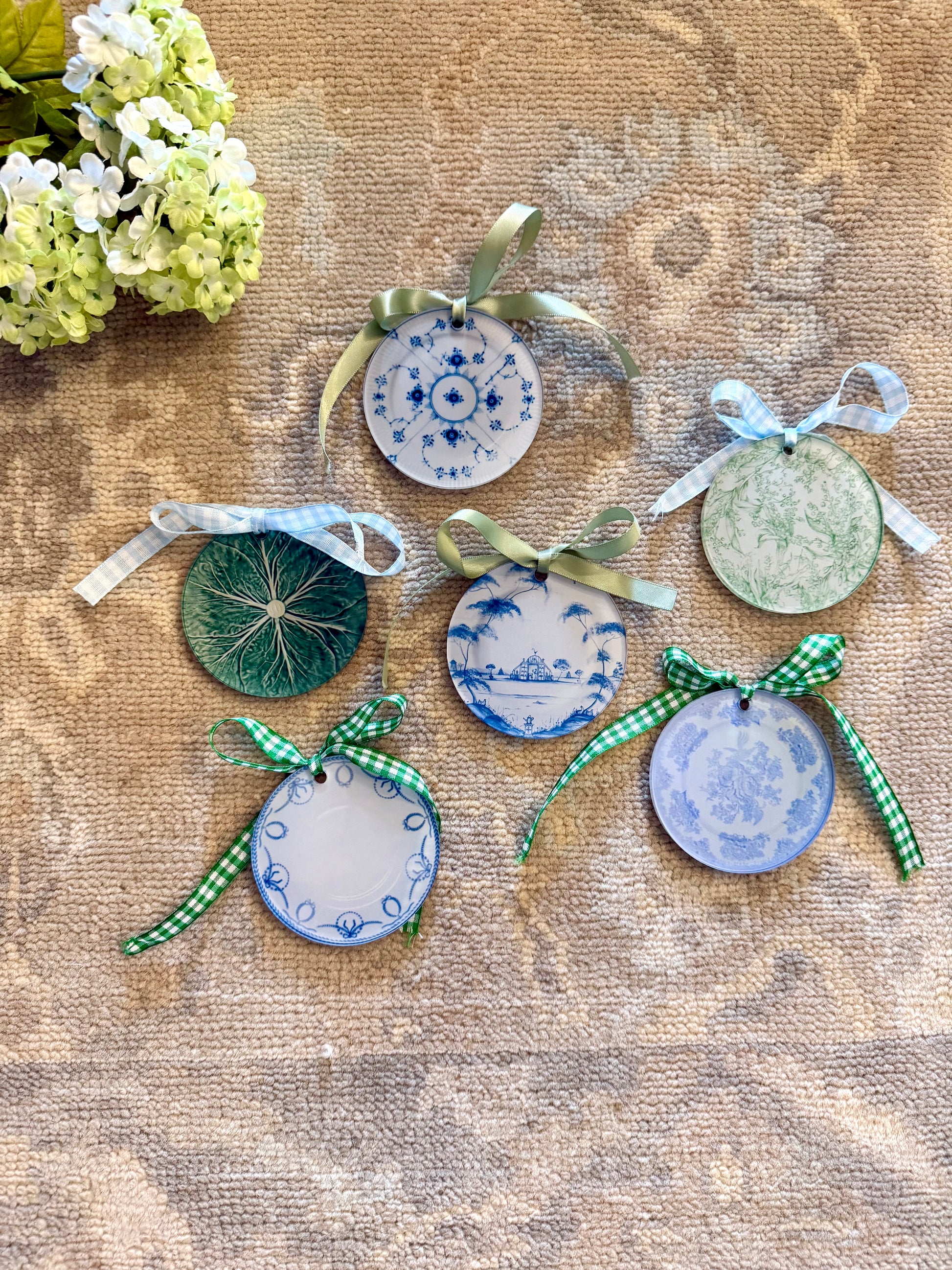 Ornaments are made to order. Each ornament is based on an actual china plate- the shadows and glares will make it look like a real little plate hanging right on your tree!