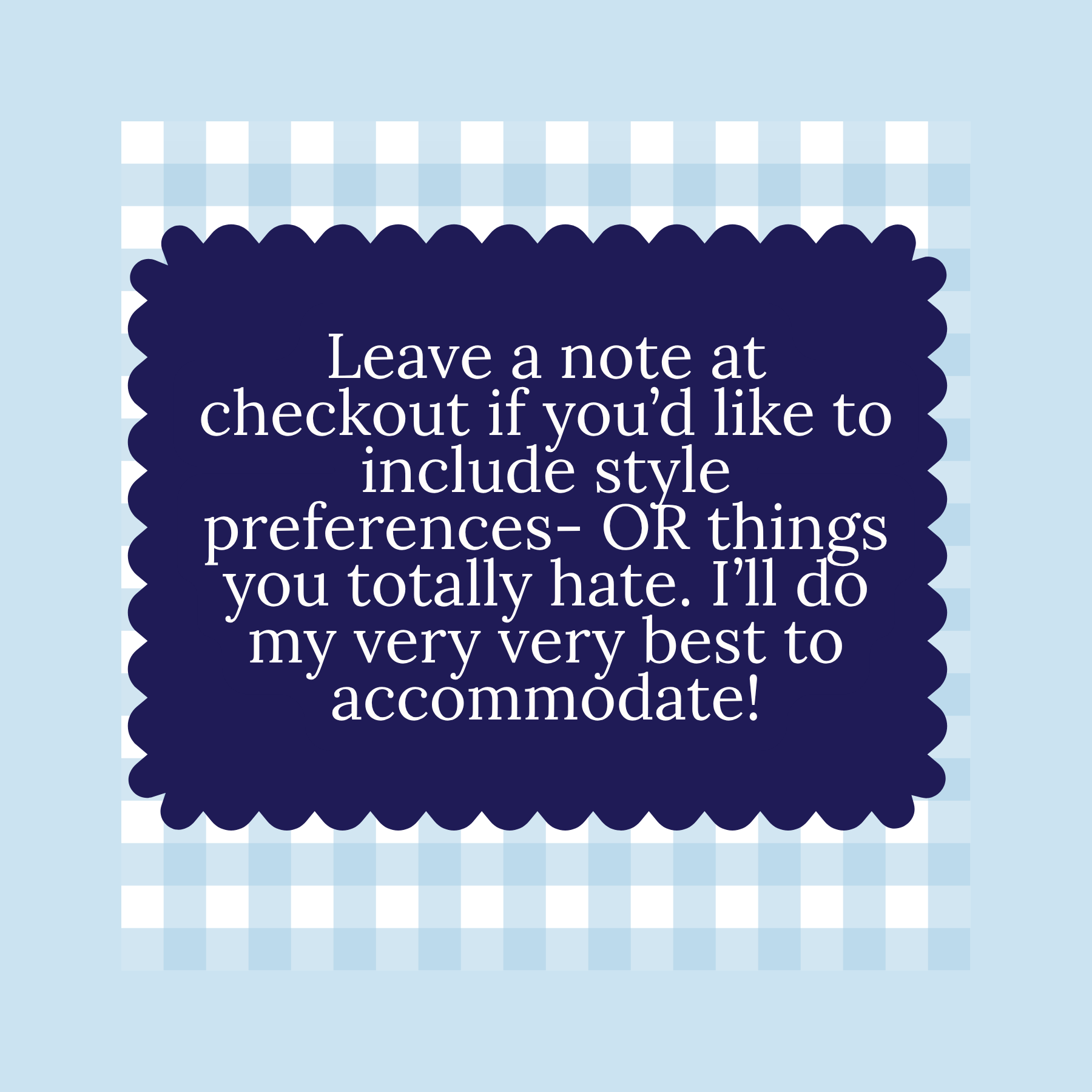 I’ll do my very best to accommodate your style and build the sweetest little stocking experience!