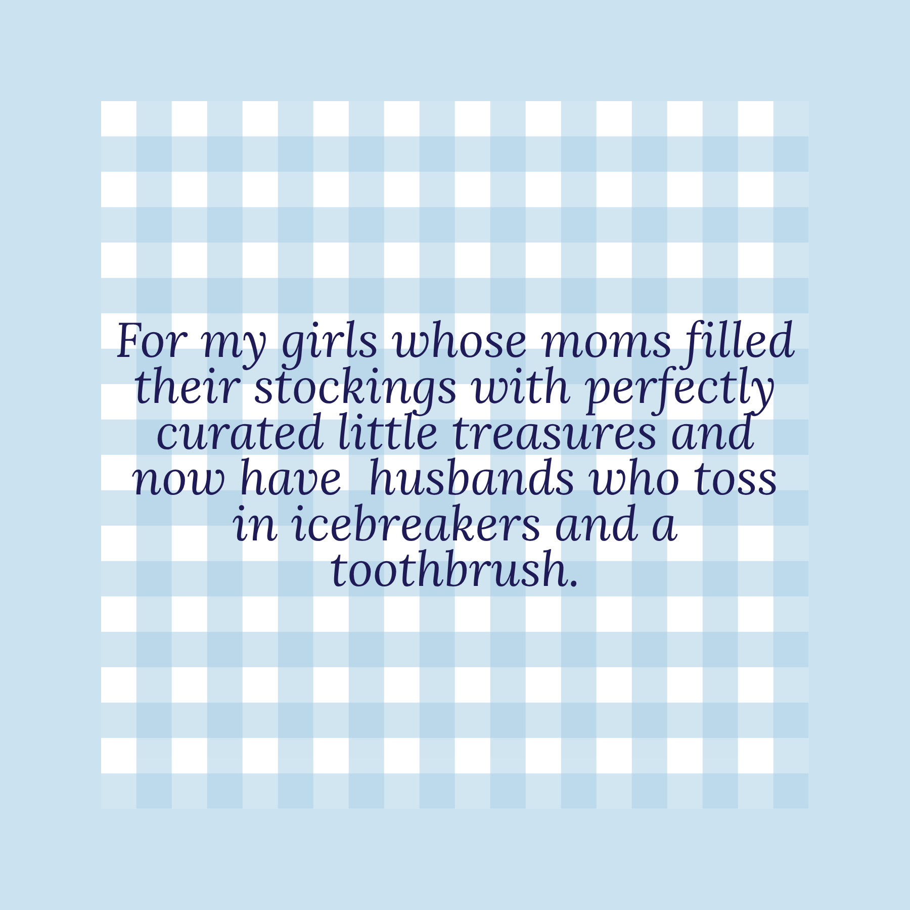 For the girls who grew up with stockings filled with thoughtful little treasures and now have husbands who toss in ice breakers and a toothbrush- I’ve got you covered!