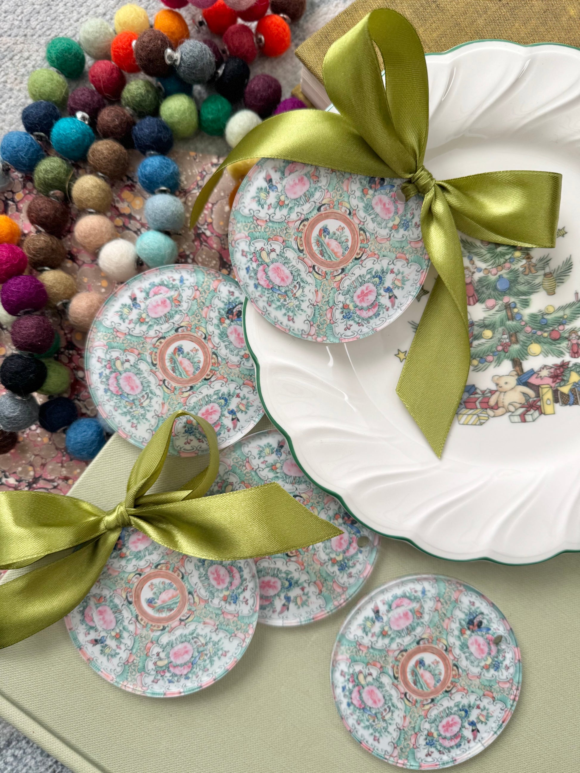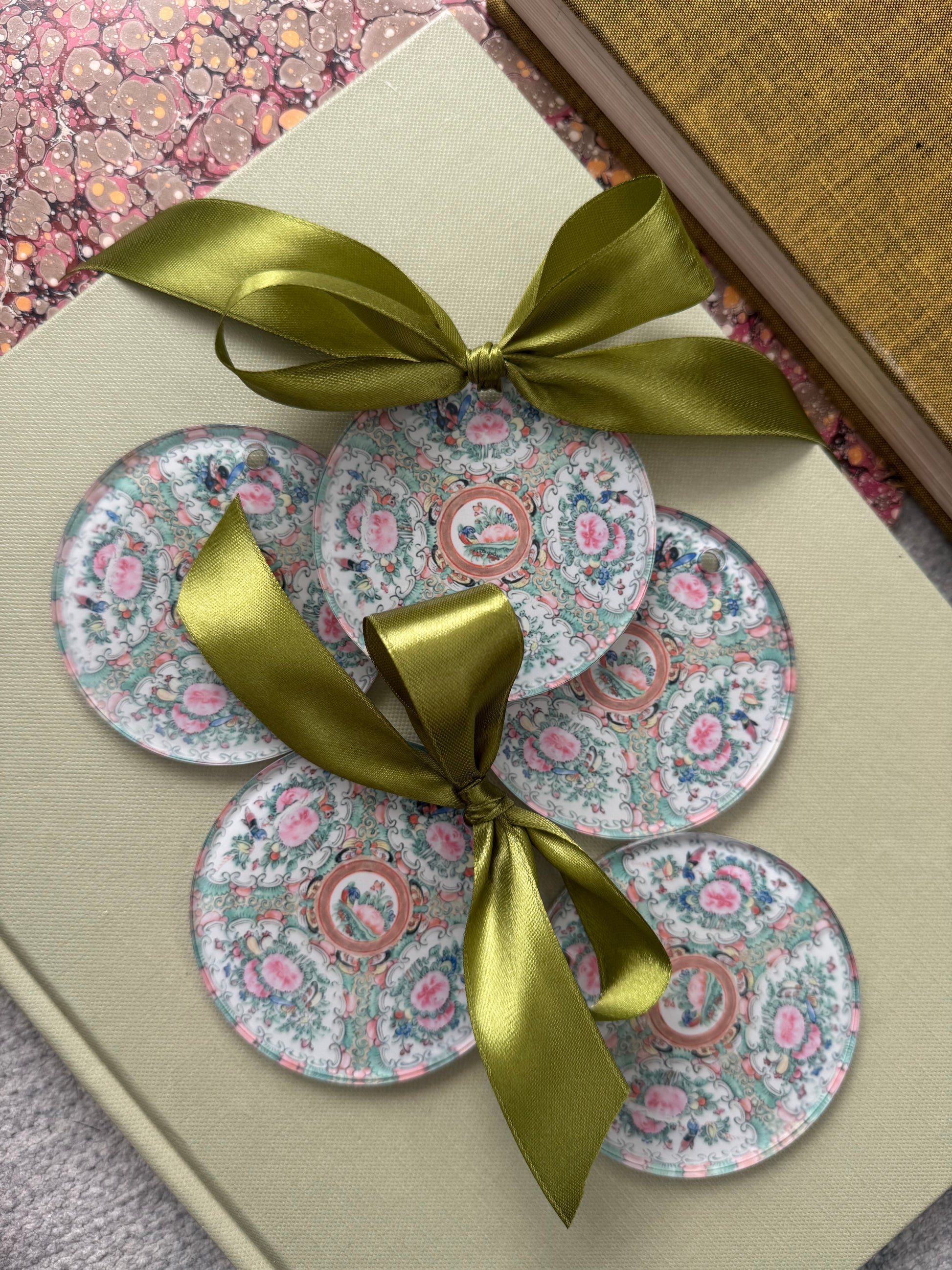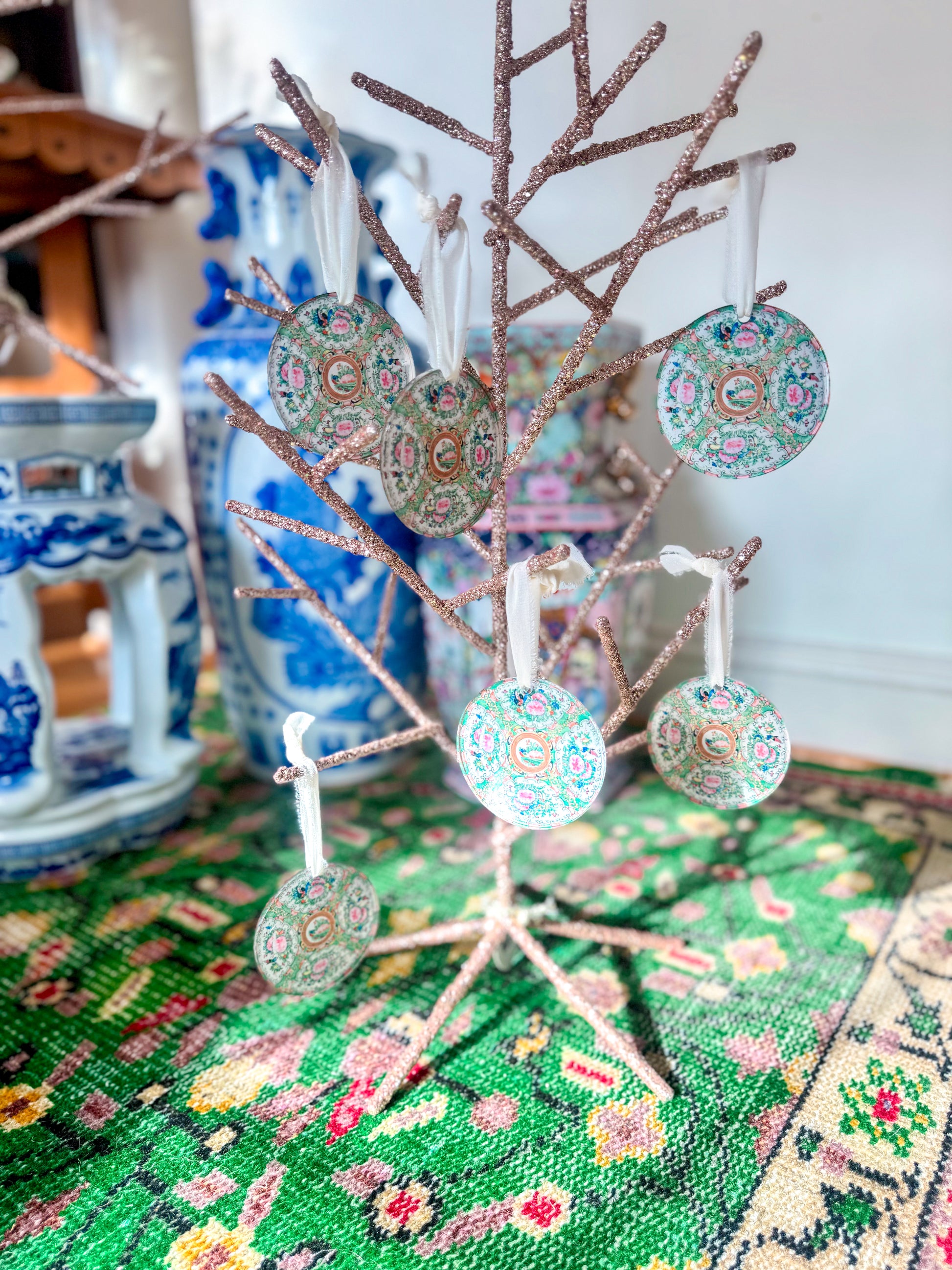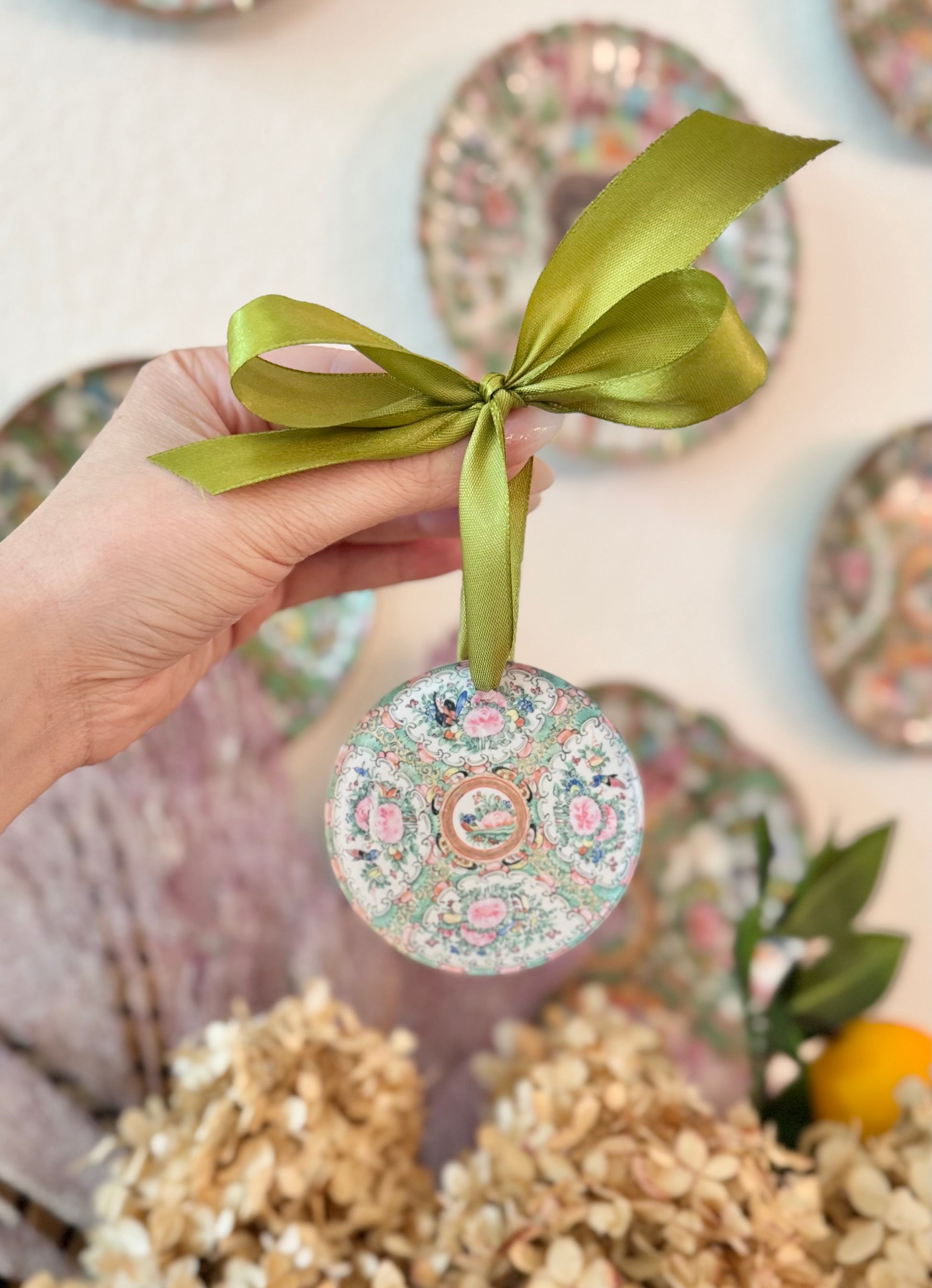 Inspired by the Rose Canton plate wall in the heart of my own home, my love for this pattern runs deep. It was the very first piece of china I discovered when I started antiquing years ago — the piece that made me fall head over heels and ultimately launched my entire business. Its timeless, feminine design translates beautifully into an heirloom-worthy ornament, ready to bring that same vibrant charm and history to your holiday décor.